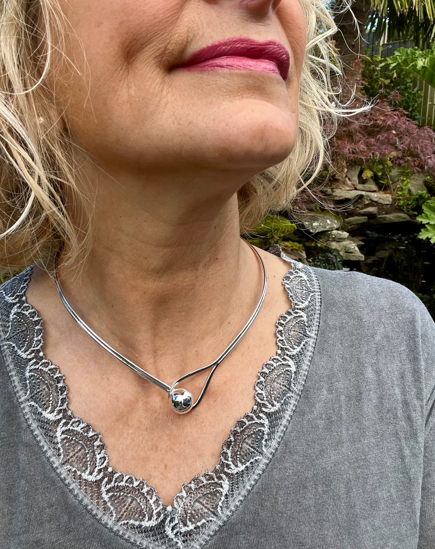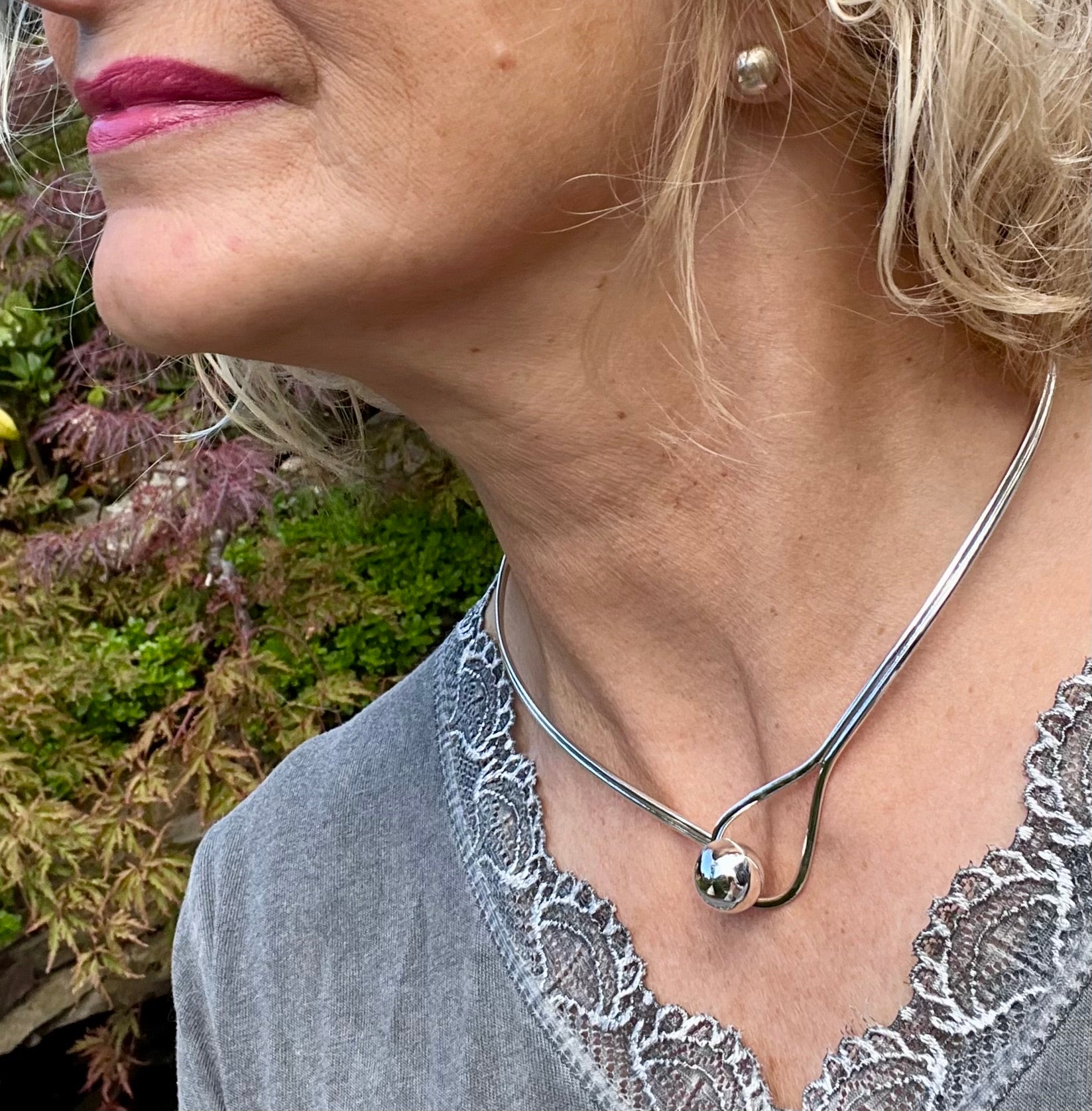 A stunning yet so simple Solid Silver Neck Bangle. This is so flattering and easy to wear! Couple up with our large 10mm Silver Ball Stud Earrings...........................Beautiful!
