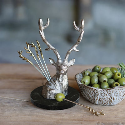 Stag Olive/Cocktail Picks & Holder On A Marble Base