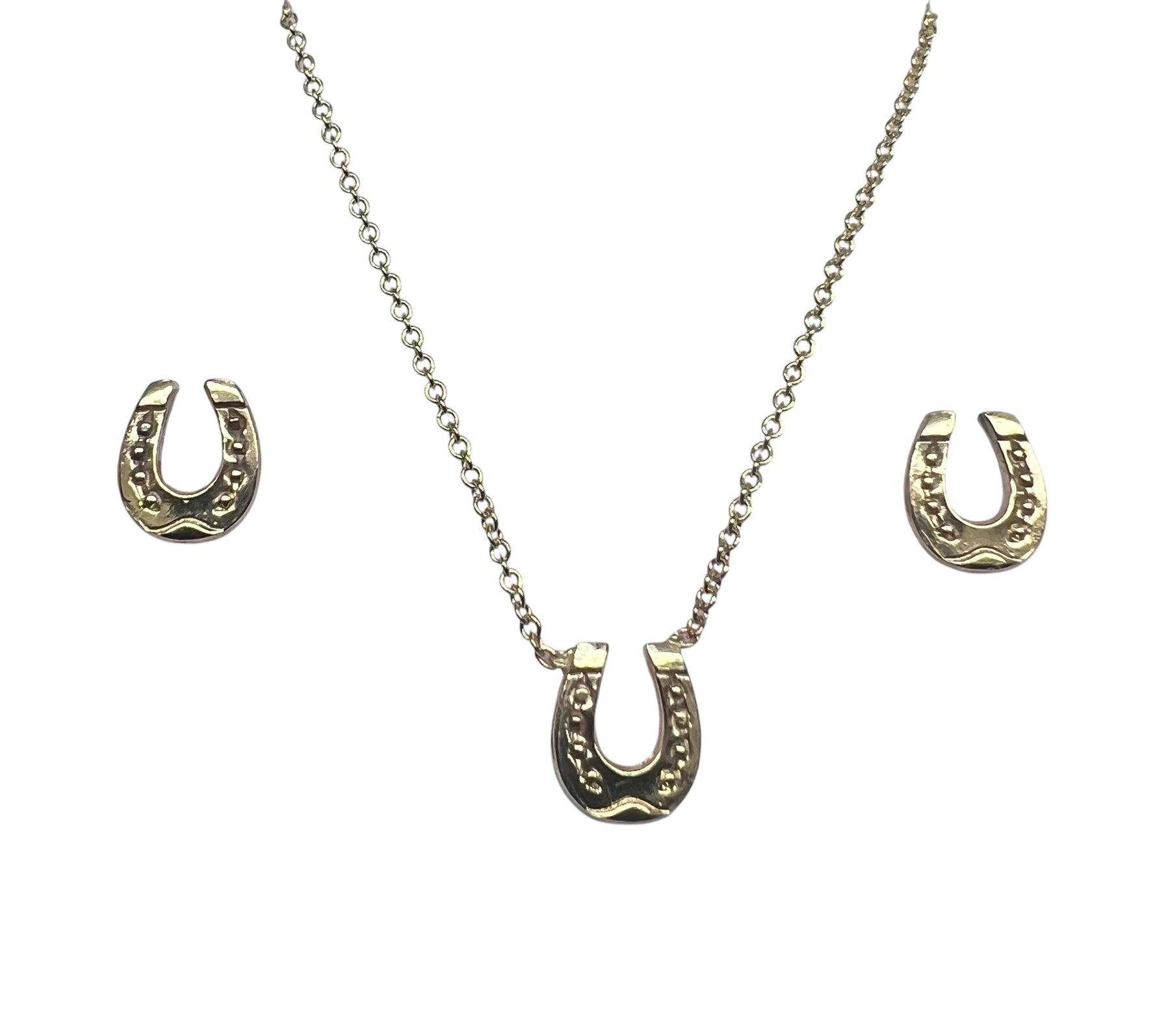 A beautifully detailed 9ct Gold Horseshoe necklet and matching earrings.